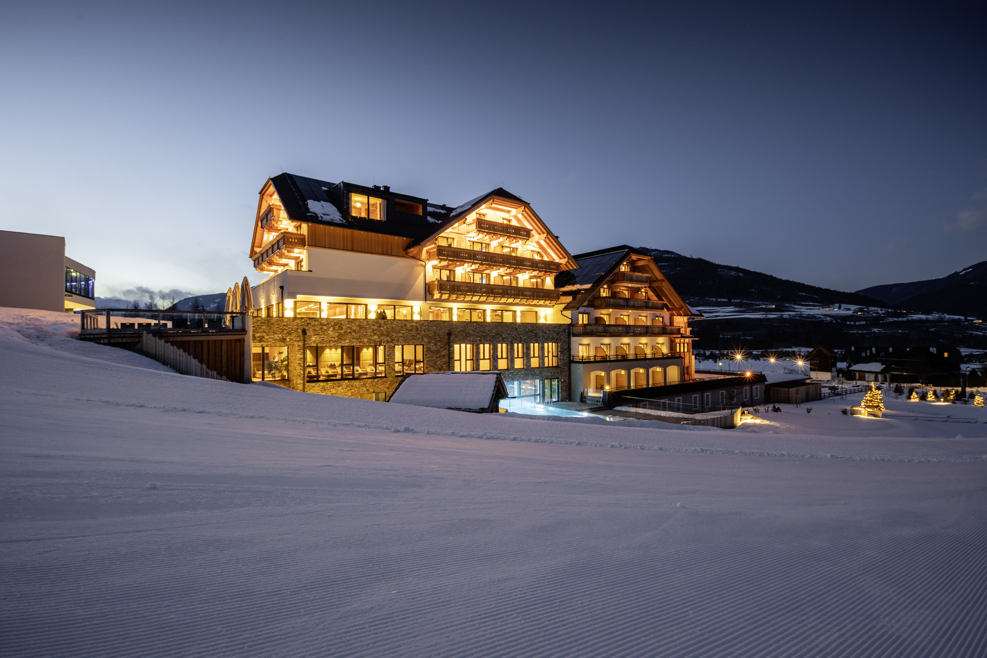 In der Wintersaison präsentiert sich das Almgut Mountain Wellness Hotel im Salzburger Lungau als Rückzugsort für Gäste, die Wintersport und Ruhe gleichermaßen suchen. Das Haus liegt am Fuße des Skigebiets Katschberg und bietet direkt von den Zimmern aus Zugang zu den Pisten.