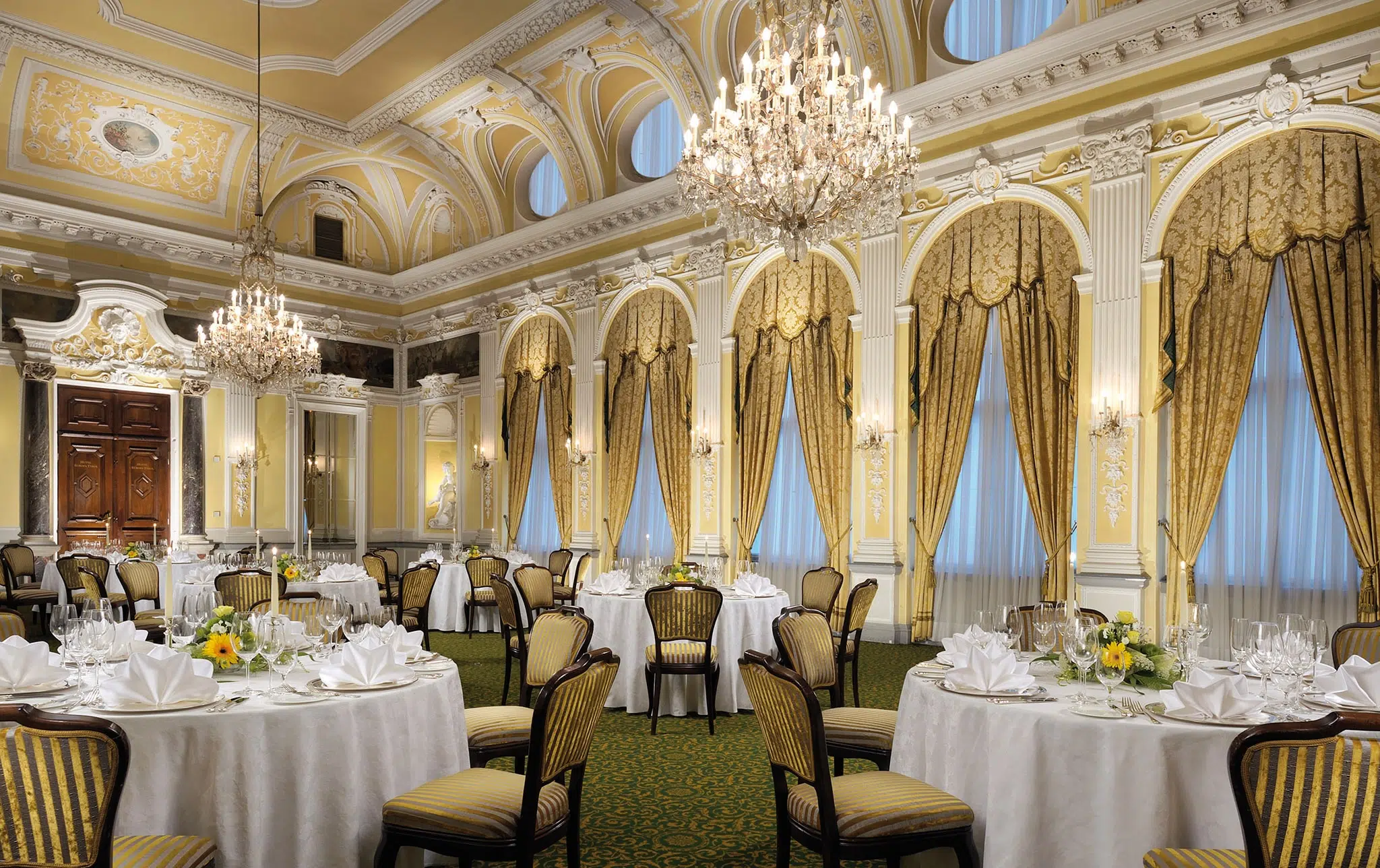 Der Barocksaal, der nicht unter Denkmalschutz stand, war im Jänner 2021 zerstört worden. Verantwortliche dafür wurden nie rechtlich belangt. In der Folge wechselte das Hotel mehrfach den Besitzer. Während der Umbauarbeiten wird die Wiener Städtische Versicherung als direkte Nachbarin eine Fassadeninstallation anbringen. Landesdirektor Walter Peer erklärte, die Installation sei „ein bewusst modernes Zeichen dafür, dass hinter der Fassade etwas passiert – und dass sich hier Tradition und zeitgemäße Entwicklung verbinden“.
