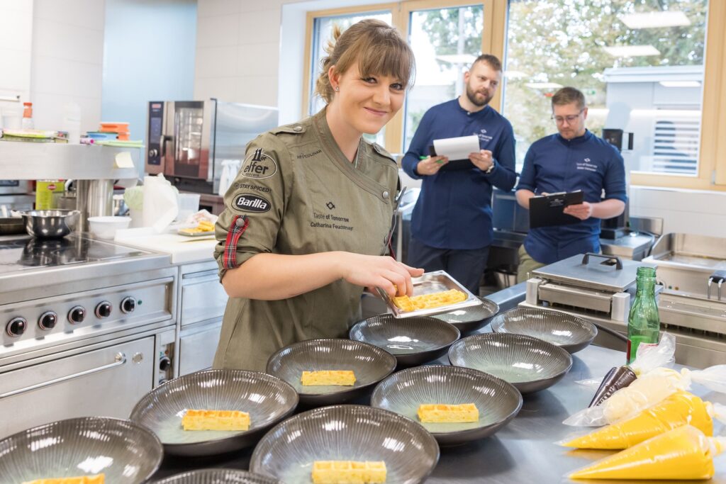 Der dritte Platz ging an Catharina Feuchtmayr (Gasthof zur Sonne, Jettingen-Scheppach, Deutschland), die mit Röstiwaffel, Butternusskürbis & Fenchelcreme ihr handwerkliches Können und ihre Erfahrung aus Sterneküchen zeigte.