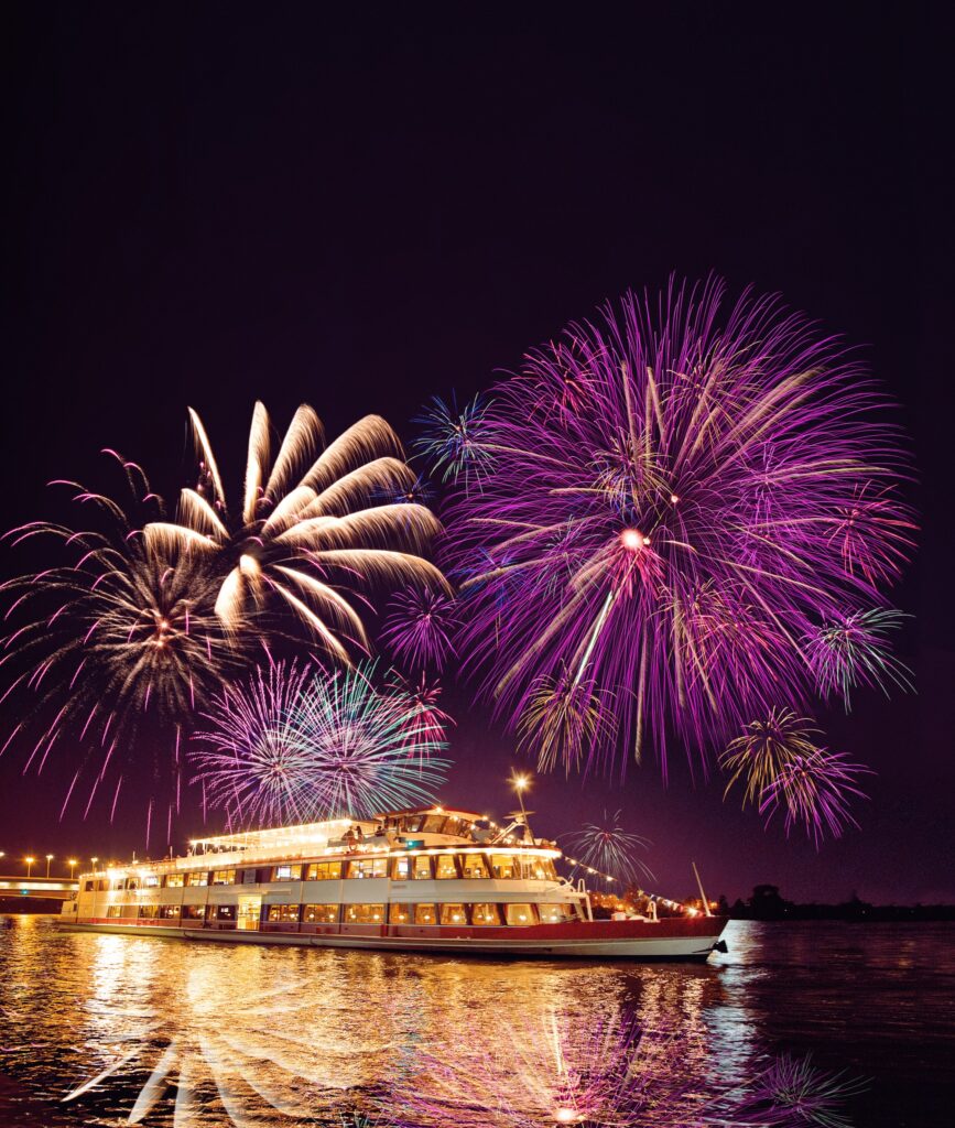 Wer lieber auf der Donau bleibt, steigt auf eines der festlich geschmückten Schiffen der DDSG Blue Danube. Ob MS Admiral Tegetthoff, MS Austria, MS Kaiserin Elisabeth oder MS Dürnstein – überall erwarten die Gäste Livebands, ein üppiges Gala-Buffet, Mitternachtsimbiss und die traditionelle Neujahrsbäckerei. Dazu erklingen Pummerin und Donauwalzer, während vom Freideck aus das Feuerwerk über Wien den Himmel erleuchtet. Gebucht werden kann online, telefonisch oder in allen DDSG-Verkaufsstellen.
